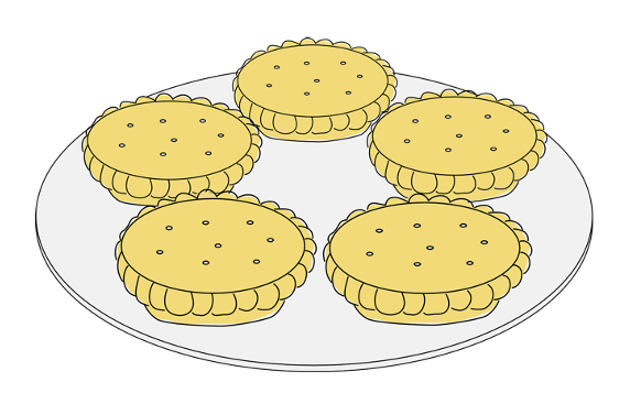 Bestemor har laga paiar til eit kakesal. Ho har vore nøye med å putte same mengda paideig i kvar form, og så vil ho gjerne finne ut kor mykje kvar pai veg.
